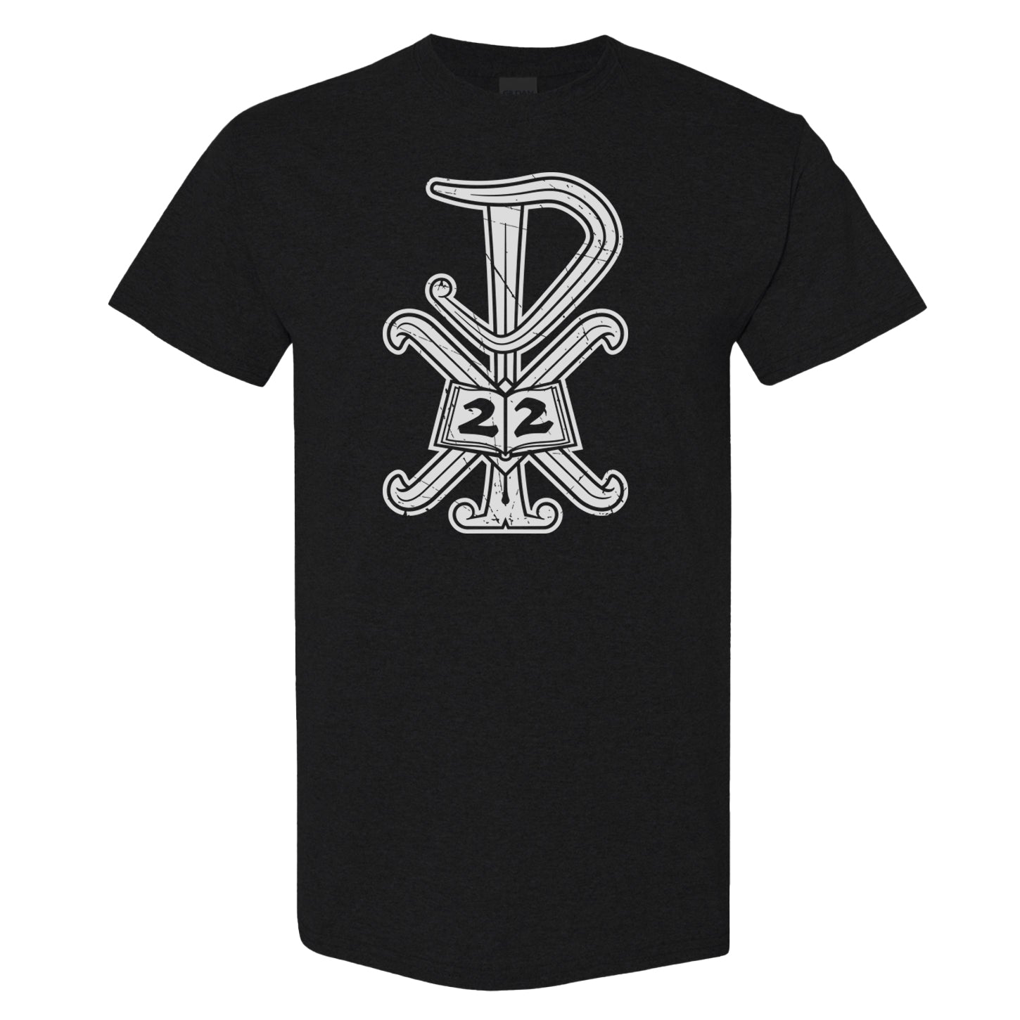 The Original P22 Logo Design. Tried and liked. Show your school support with this grungy looking logo design. Black shirt with a proud, white P22 silk screened logo.
